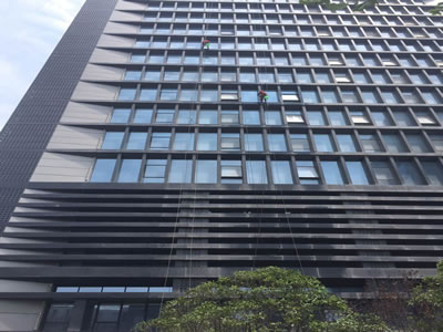 3.百葉窗施工人員上崗時(shí)要先系安全帶,再系保險鎖,然后再系好卸扣,同時(shí)坐板扣子要打緊,固死。